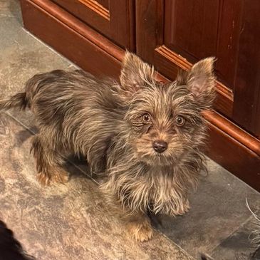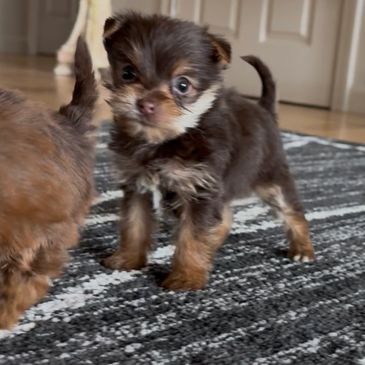 Otter is a very tiny playful chocolate and tan Yorkie born 2/5/26